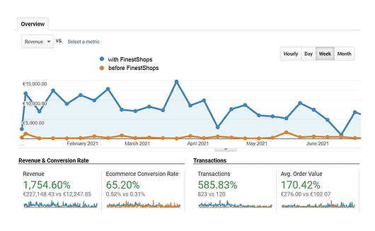 After just the first round of changes, the number of orders increased x7 times from 20 to 140 per month; the order average more than doubled from €102 to €276, and online revenue increased x18 times from €2000 to €37000 per month.
